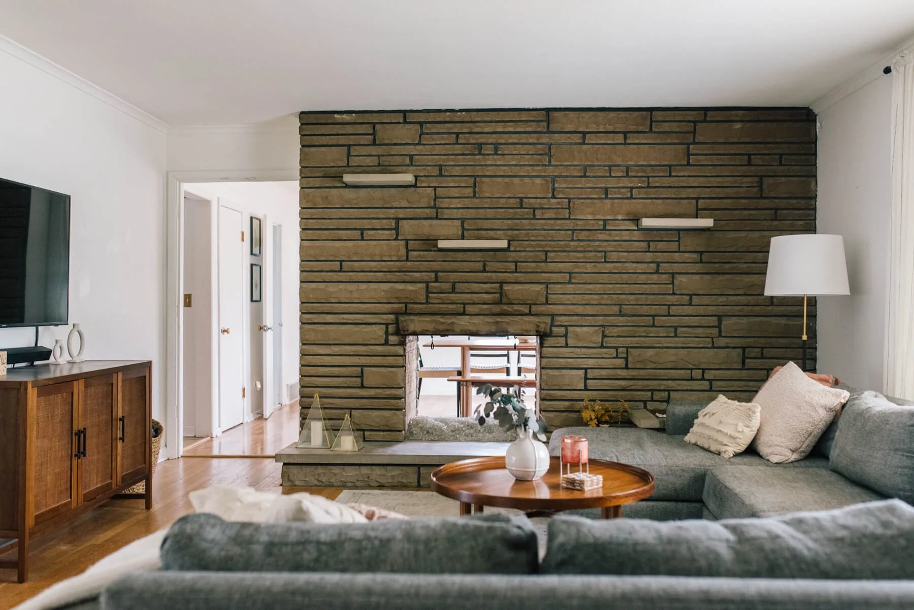 Exceptional Berwick ranch with midcentury character throughout. Generous layout with with large living space off entry and dramatic double-sided fireplace that opens to formal dining. Renovated kitchen with quartz, subway tile, open shelving, recessed lighting, and stainless appliances. Three ample bedrooms and 2.5 total baths. Primary and half bath refresh in 2021 added Carrara marble flooring, new vanities, and fixtures. Furnace, AC, and water heater replaced in 2020. Kitchen opens to Inviting Florida room with large fenced yard, rear patio, and 2-car garage. Handsome stone and stucco exterior with mature trees. Close proximity to Bexley, downtown Columbus, and easy access to CMH.